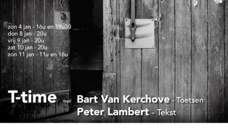 met; Bart Van Kerckhove en Peter Lambert, tekst en toetsen. Anne de Meulemeester, beeldende kunst:"tussen eb en vloed".